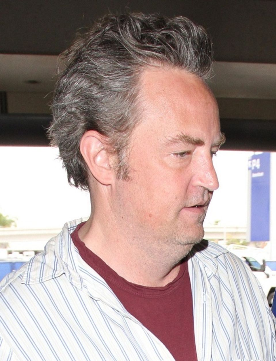 Večne vtipkujúceho Chandlera by ste ale v hercovi dnes hľadali márne. Matthewa Perryho zachytili fotografi na Medzinárodnom letisku Los Angeles oblečeného v košeli, ktorá pripomínala skôr pyžamo! Matthew však najviac zaujal svojím účesom. Dlhými sivými vlasmi pripomínal Jima Carreyho vo filme Ace Ventura.