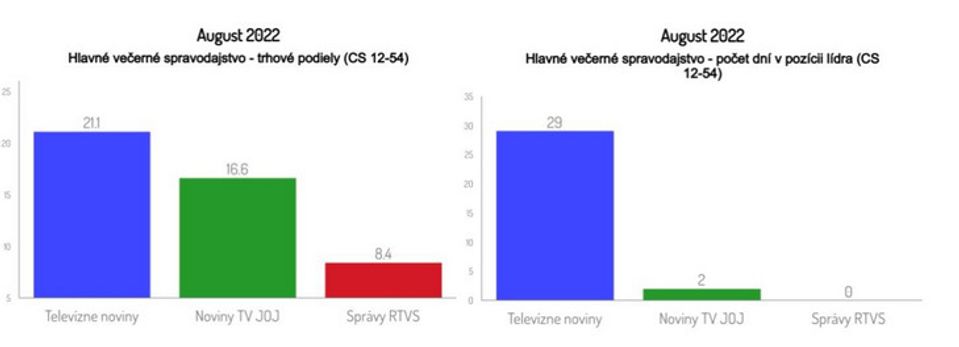 Televízne noviny v auguste 2022 zvíťazili nad konkurenciou v 29 z 31 dní. V cieľovej skupine 12-54 zaznamenali priemerný rating 4,6 % a trhový podiel 21,1 %. Súhrn najdôležitejších udalostí dňa z domova i zo sveta na Markíze uprednostnilo v priemere 332-tisíc divákov starších ako 12 rokov.