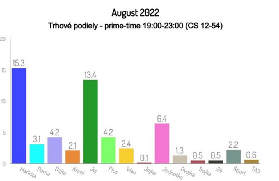 TV Markíza dosiahla v auguste 2022 v prime-time 19:00-23:00 priemerný