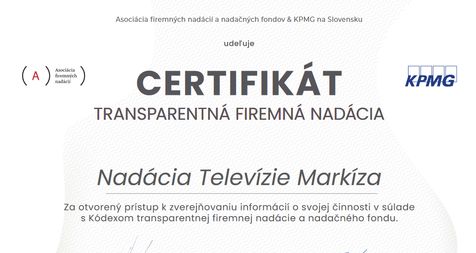 Nadácia Markíza Nadácia Televízie Markíza opäť získala Certifikát transparentnej firemnej nadácie 13. 10. 2023 sal Sal