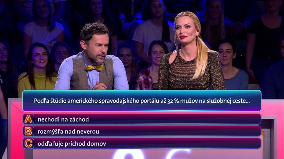 No názorové nezhody sa prejavia už hneď pri prvej otázke. Marianna sa totiž s Jurajom Kemkom nedokázala zhodnúť, čo robia, respektíve nerobia muži na služobnej ceste. Kým Juraj uvažoval o možnosti premýšľania nad neverou či odďaľovania príchodu domov, Marianna razila toaletnú cestu. Svoje si nakoniec presadila, pretože muži vraj nad neverou môžu uvažovať hocikde, nielen na služobnej ceste. Mala pravdu?