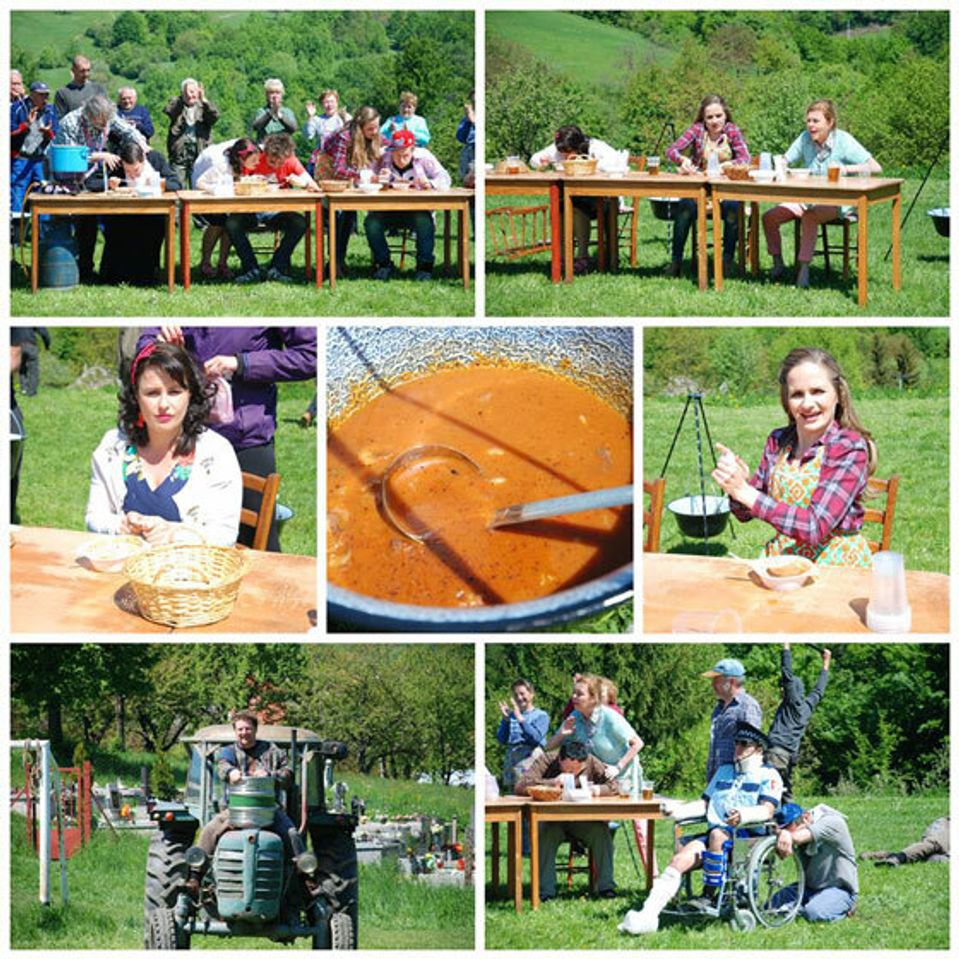 Súťaží sa v pároch. O výhru zabojujú: Lacko a Terezka, Zdena a starosta, otec a syn Chalupkovci a samozrejme starostova asistentka Erika a miestny frajer Ďuro.