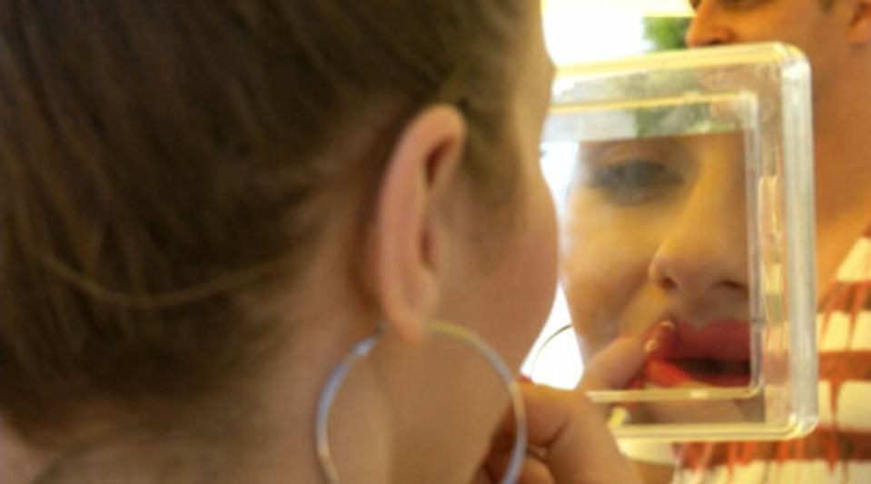 2. Potom ich vyplňte rúžom, čím červenšie, tým lepšie