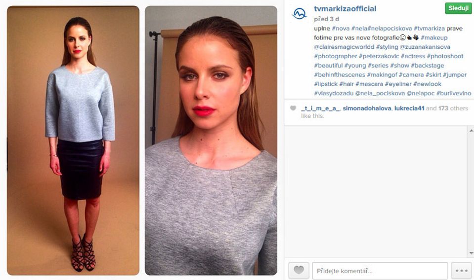 Zatieni aj modelky! Seriálová a muzikálová herečka Nela Pocisková má za sebou fotenie nových záberov pre televíziu Markíza. Vďaka skvelému stylingu ukázala, že žena nemusí byť sexy, len keď sa odhaľuje. V obyčajnom sivom tope, čiernej koženej sukni a sandálikoch na vysokých popätkoch vyzerala úžasne! K tomu vlasy sčesané dozadu a výrazný červený rúž... Perfektné!