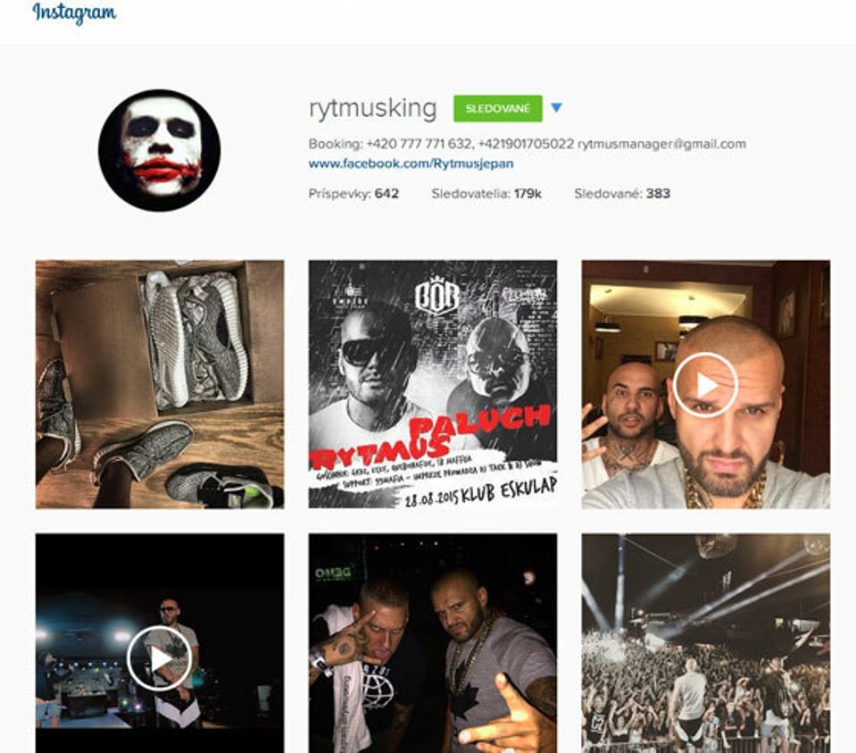Pozrime sa na Rytmusa. Ten má na svojom Instagrame 179-tisíc fanúšikov. On sám sleduje 383 prispievateľov.