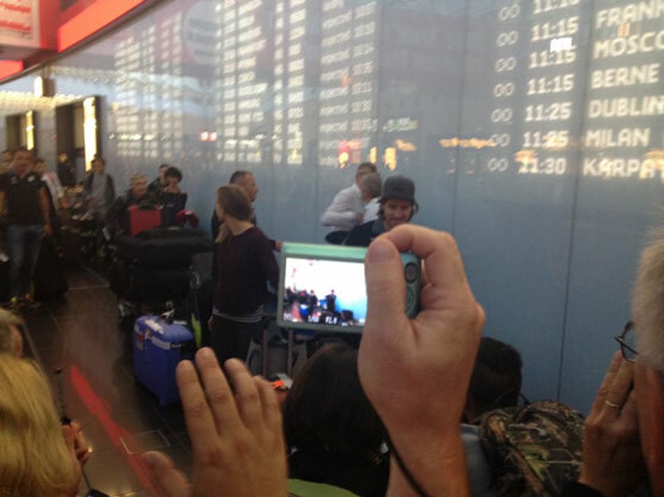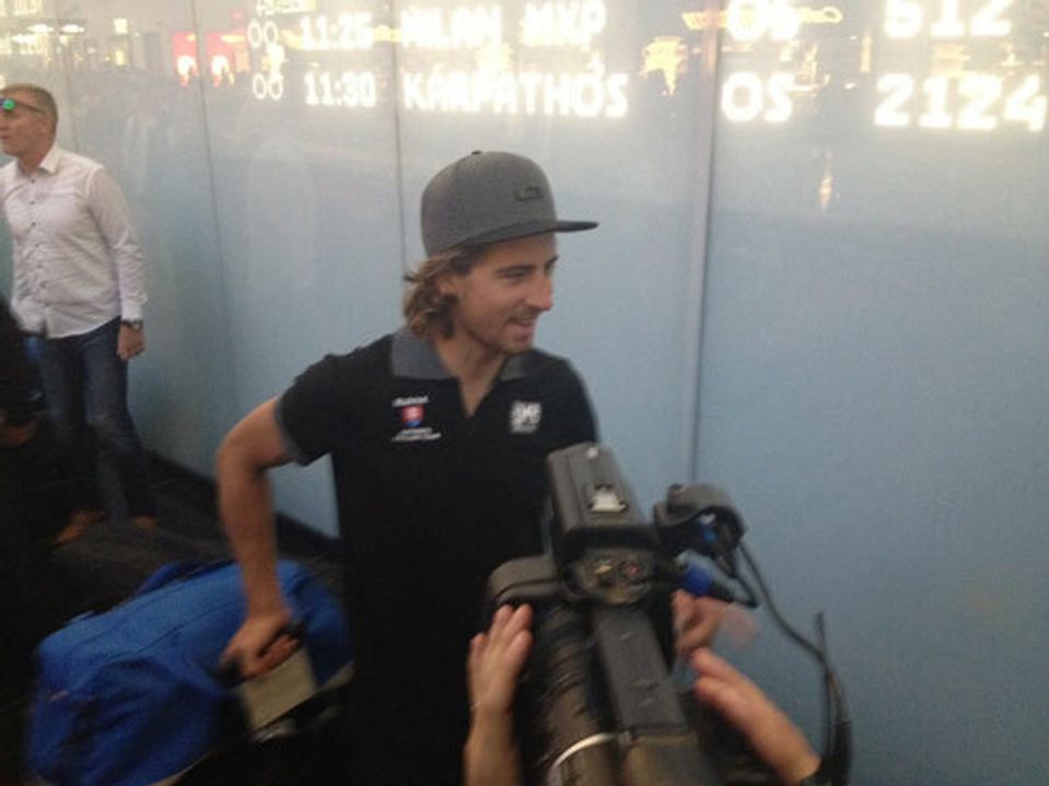 A je to tu! Majster sveta v cestnej cyklistike Peter Sagan je už doma. Peter priletel na rakúske letisko pred pár minútami, kde ho už nadšene očakával dav fanúšikov a novinári. Peter svojím výkonom potešil tisíce Slovákov, ktorí teraz môžu s držiteľom dúhového dresu oslavovať.