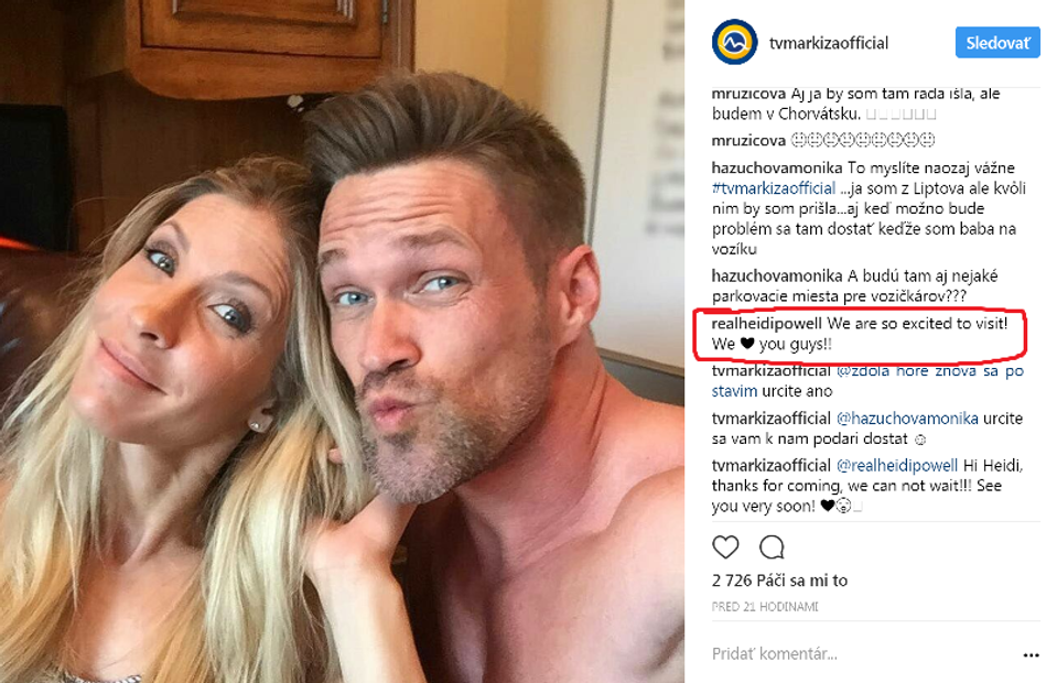 A to, že sa Heidi na slovenských fanúšikov teší, je úplne jasné. Pod fotku na sociálnej sieti Markízy totiž napísala milý odkaz adresovaný slovenským fanúšikom: "Už sa veľmi tešíme na návštevu! Všetkých vás ľúbime!"