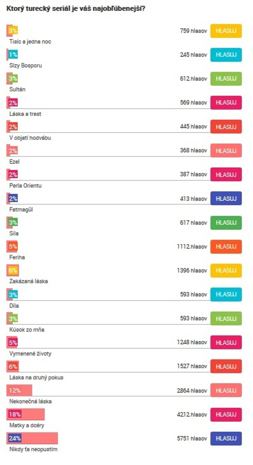 Na druhom miestne sa umiestnili dojímavé Matky a dcéry (18 %) a bronzovú priečku obsadila osudová Nekonečná láska Nihan a Kemala (12 %).