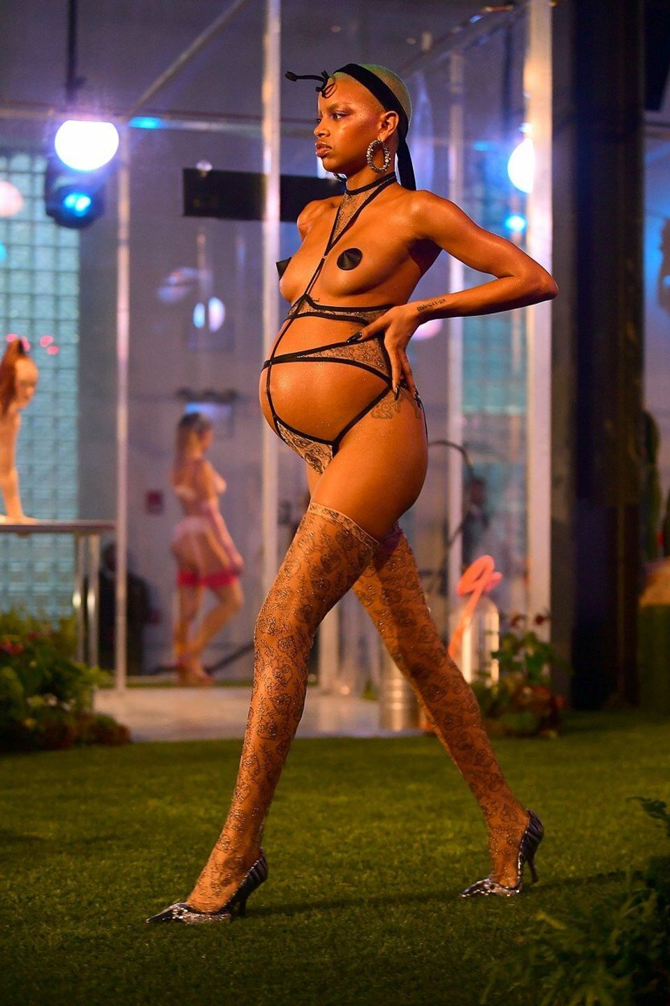 Tridsaťročná kráska do svojej kampane zakomponovala aj dve tehotné modelky. Jednu z nich museli ihneď po tom, ako zišla z predvádzacieho móla, previezť na pôrodnú sálu, píše portál TMZ.