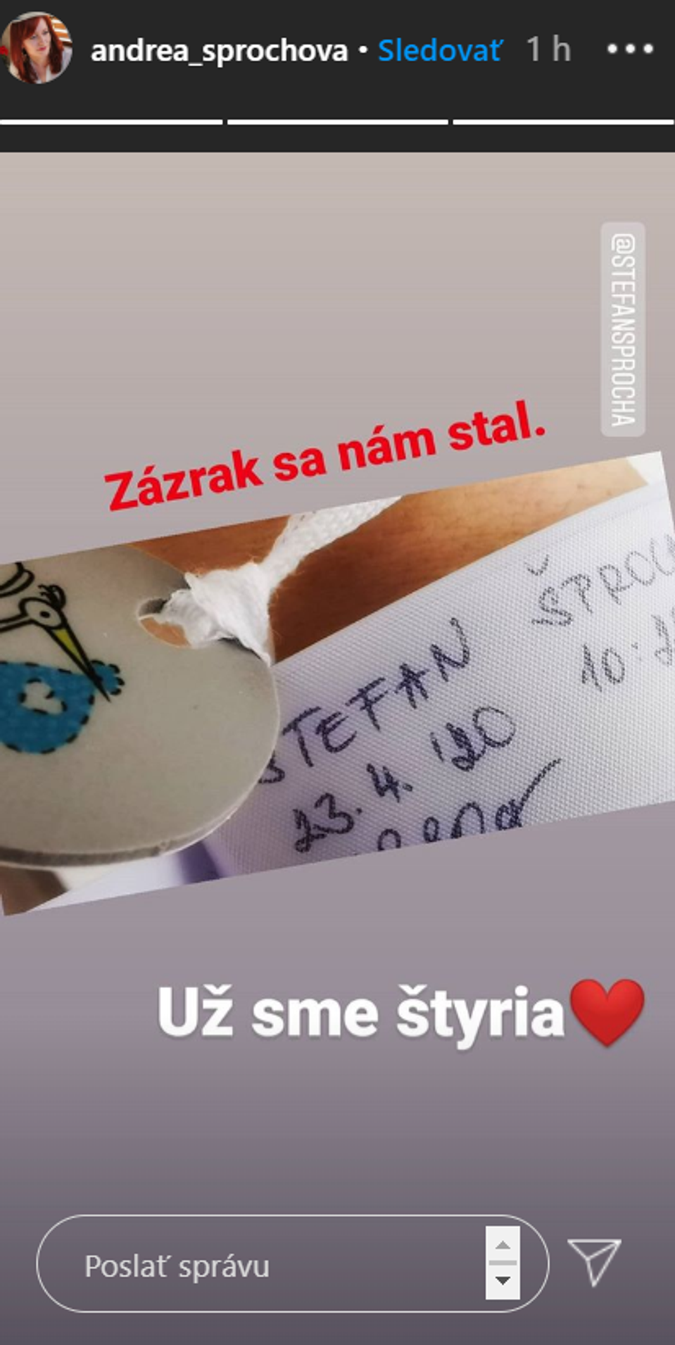 A už sú štyria! Manželia Števo a Andrea Šprochovci majú obrovský dôvod na radosť. Na svet sa vypýtal ich synček, ktorý dostal meno po otcovi.