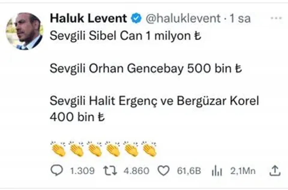 Rockový spevák Haluk Levent, ktorý vyhlásil jednu zo zbierok, pravidelne zverejňuje na svojom twitterovom účte mená osobností, ktoré sa do zbierky zapojili. Medzi niektoré slávne mená patrí napríklad aj Can Yaman (Can zo seriálu S hlavou v oblakoch). Ten prispel do zbierky 250-tisíc tureckých lír (vyše 12-tisíc eur). V jednej zo svojich posledných správ Haluk Levent oznámil, že manželia Bergüzar Korel a Halit Ergenç (Šeherezáda a Onur z Tisíc a jednej noci) prispeli do zbierky sumou 400-tisíc tureckých lír, čo je takmer 20-tisíc eur. Dokázali tým, že majú veľké srdce a že osud iných ľudí im nie je ľahostajný.